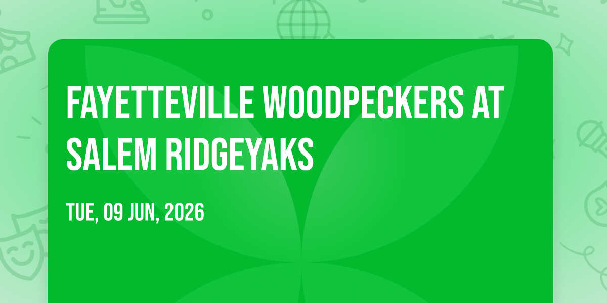 📍 Location: 37.2857, -80.0371✨ Experience the magic of Fayetteville Woodpeckers at Salem RidgeYaks, where moments become memories that last a lifetime! 🏛️ The iconic Carilion Clinic Field in Salem, VA sets the perfect stage for an unforgettable celebration on June 14th, 2026 at 08:05 PM. 🌟 It's been a curated experience that brings together the best of entertainment and innovation, creating an atmosphere of wonder and excitement. From the moment you arrive, you'll be immersed in a world where the ordinary transforms into the extraordinary. 🎊 Book early to secure your place in what promises to be an event that will be talked about for years to come!