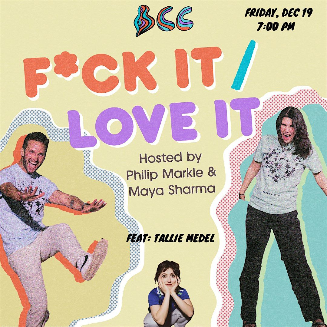 BCC is thrilled to announce our new podcast, in partnership with Studio A Productions, called F*CK IT / LOVE IT, all about platforming the community at the BCC and our ethos of not taking ourselves too seriously (f*ck it) and loving what we do and everyone we do it with (love it). Every single episode will be filmed and recorded before a live audience at the Pig Pen Theater, with the guest picking a comedian to platform on the episode.