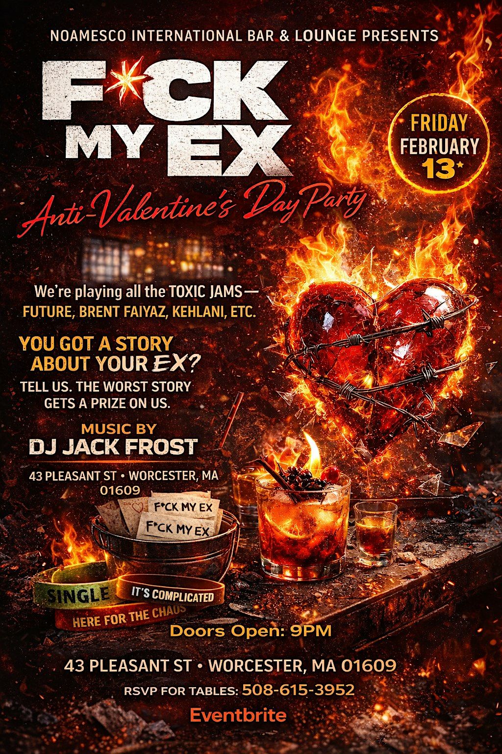 Welcome to , F*CK MY EX the Anti-Valentine’s Day party where we’re playing all the toxic jams, dancing our feelings away, and talking our sh*t!