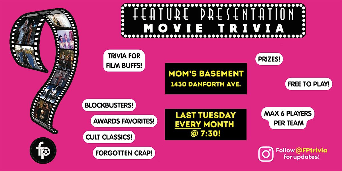 Do you know your Top Gun from your Naked Gun? Your Spielberg from your Soderbergh? Your Paxton from your Pullman? If you answered yes to any of these rhetorical questions, please join us on the last Tuesday of every month at Mom’s Basement for Feature Presentation Movie Trivia! There’ll be questions for all genres across all eras, so cinephiles of all kinds are welcome. It’s free to play and there’s prizes for winners, so frankly it would be silly if you didn’t attend. Shall we play a game?