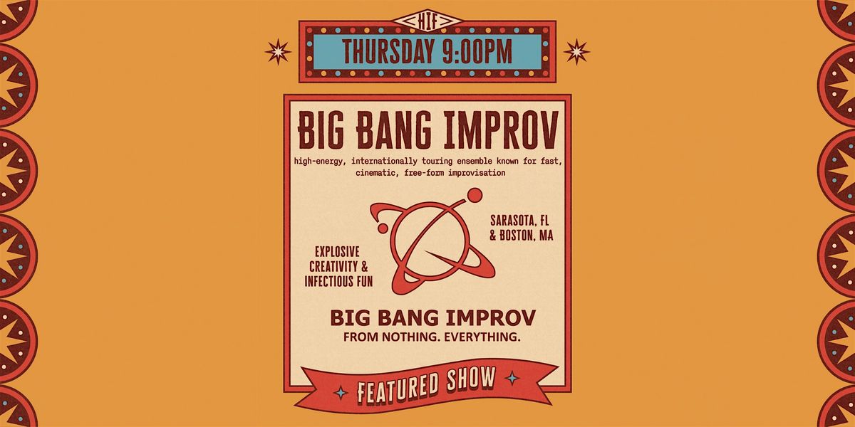 Big Bang Improv is a high-energy, internationally touring ensemble known for fast, cinematic, free-form improvisation. Led by veteran improviser and director Will Luera, the team blends sharp pattern recognition, bold character work, and fearless play to create spontaneous worlds that feel scripted… until they gloriously aren’t. With roots in ImprovBoston and Florida Studio Theatre and performances across North and South America, Europe, and Asia, Big Bang brings global experience, explosive creativity, and infectious fun to every stage.