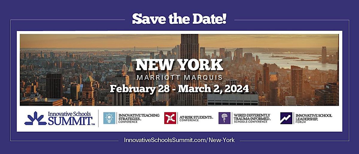 REGISTER BY UPLOADING A DIGITAL PURCHASE ORDER HERE. Held at the New York Marriott Marquis, February 28-March 2, 2024, the Innovative Schools Summit New York includes access to 4 Conferences for the Price of One!