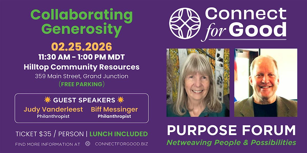 At this monthâs Connect for Good Purpose Forum, weâll explore generosity as a lived practiceânot reserved for people with wealth, titles, or formal credentials, but accessible to anyone willing to offer time, energy, perspective, and follow-through.