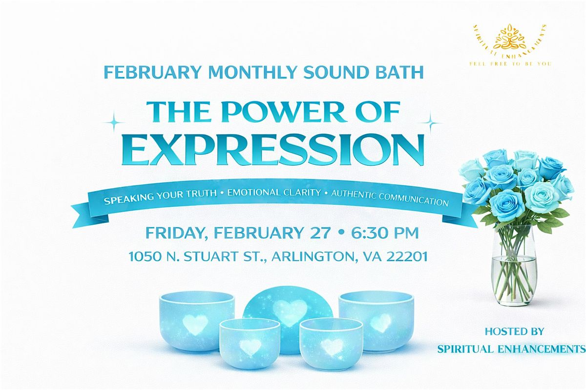 Join our monthly sound bath February: Energy of Expression — giving voice to your emotions, honoring your inner truth, and allowing yourself to be heard with clarity and confidence.