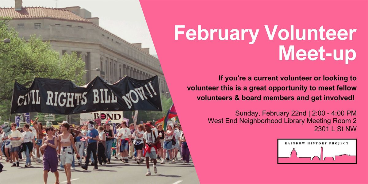 Come join Rainbow History’s Volunteer working groups on Sunday, Febraury 22nd from 2-4pm. We'll meet at West End Neighborhood Library meeting room 2!