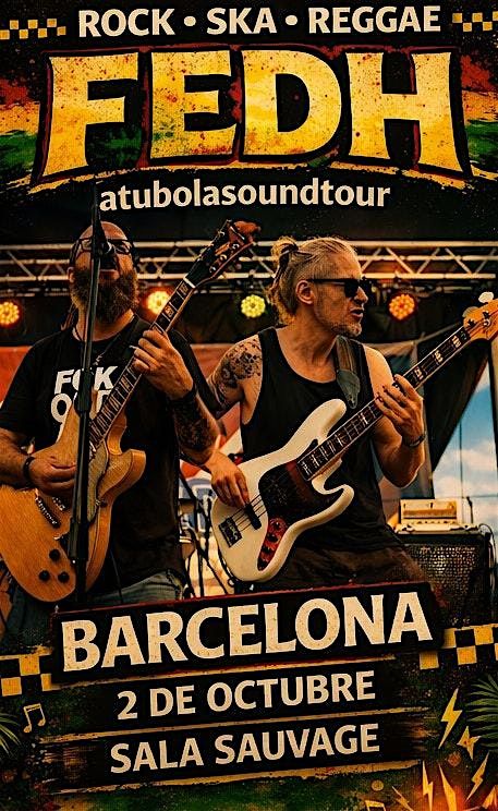 FEDH te trae una noche cargada de Reggae, Ska y Rock en directo a Barcelona: Sonidos explosivos, groove, vientos y energía positiva para que no pares de bailar. Un concierto para moverte, sudar y disfrutar de la música en directo. Si vienes con ganas de pasarlo bien… esta es tu noche.