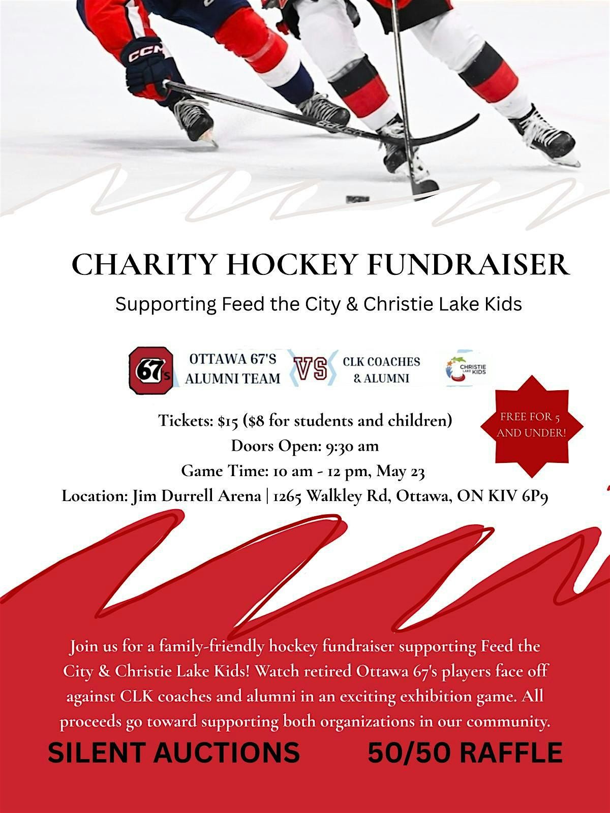 Join us for a fun-filled, family-friendly afternoon at the Feed The City x Christie Lake Kids Charity Hockey Game! This exciting exhibition match will feature Christie Lake Kids coaches and alumni going head-to-head with former Ottawa 67’s players in a game you won’t want to miss!