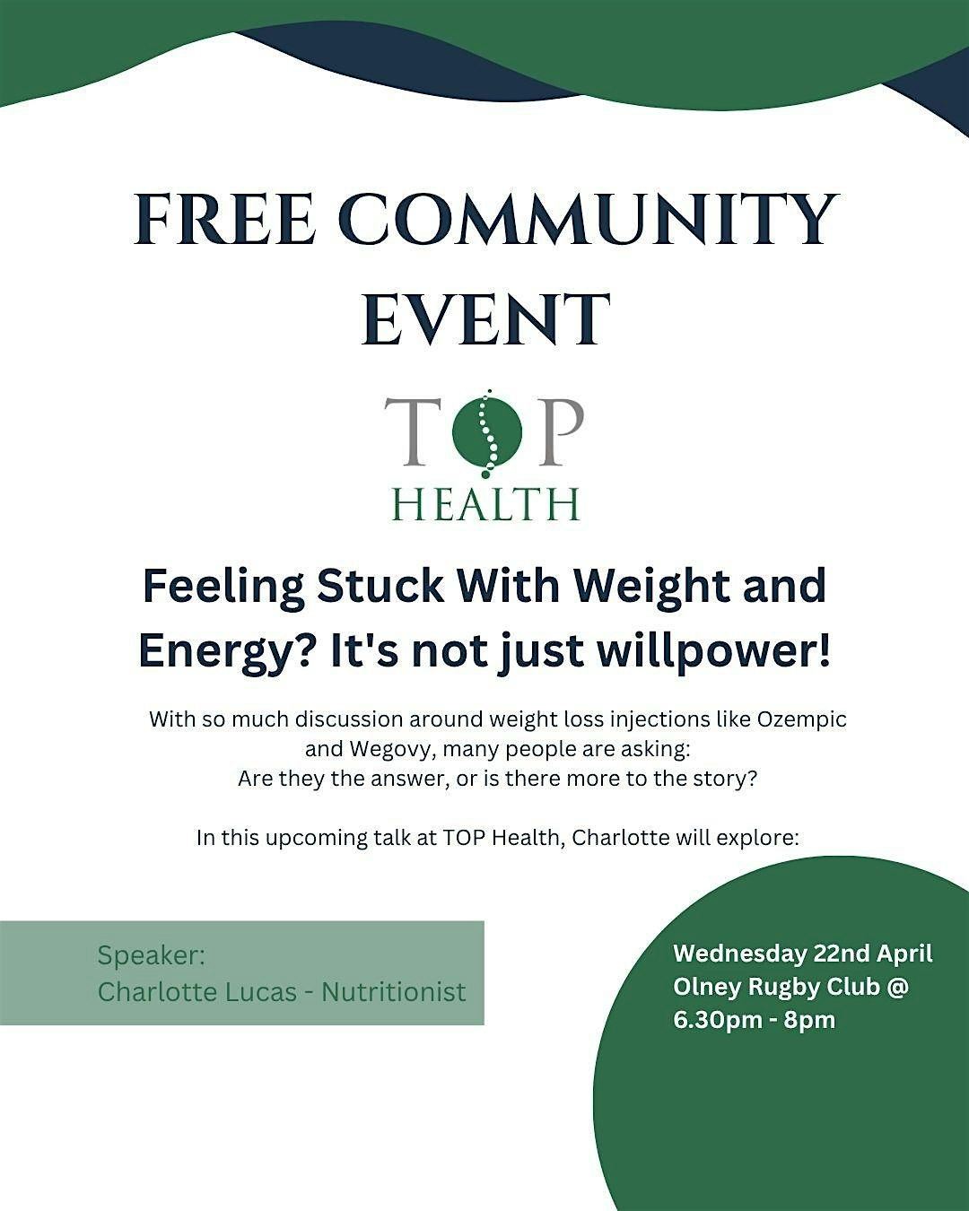 In this upcoming talk at Top Health, Charlotte will explore: