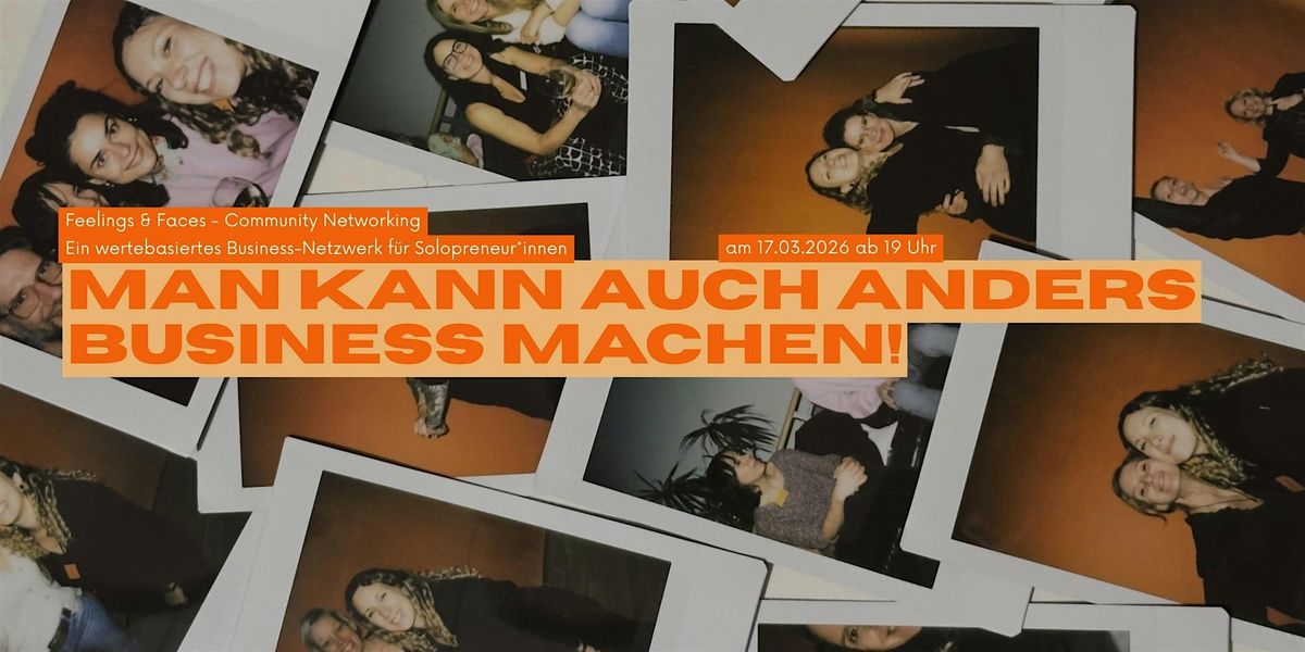 Feelings & Faces Community ist ein wertebasiertes Business-Event für Selbstständige und Freiberufler*innen, die echte Verbindungen suchen und nachhaltiges Wachstum wollen. Der Fokus liegt auf professionellem Austausch, gegenseitigem Support und konkretem Mehrwert. Kein Pitch-Zwang, kein Statusspiel, keine leeren Netzwerkrituale.