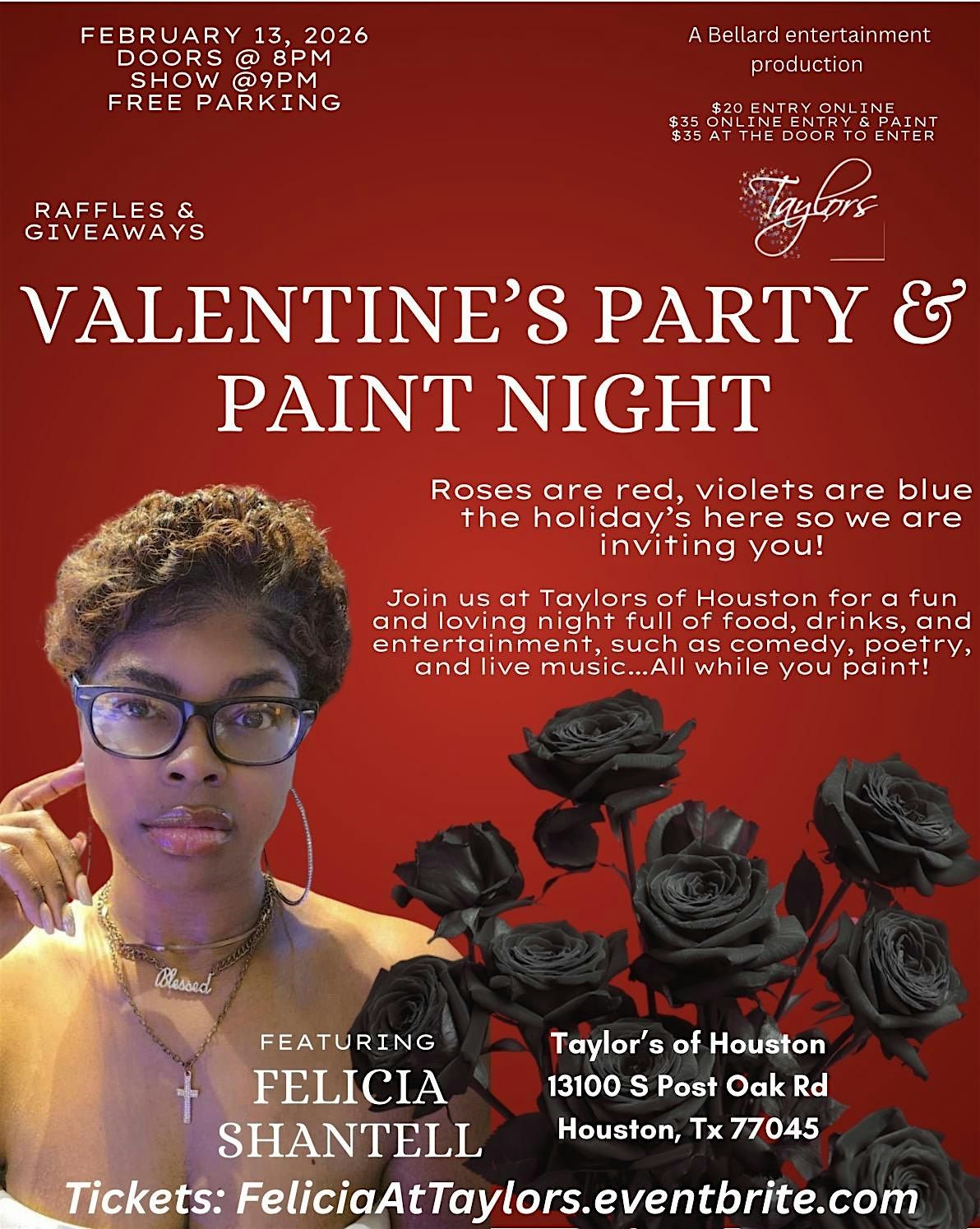 Join us Friday night in honor of Valentine's Day at Taylor's of Houston hosted by Bellard entertainment!