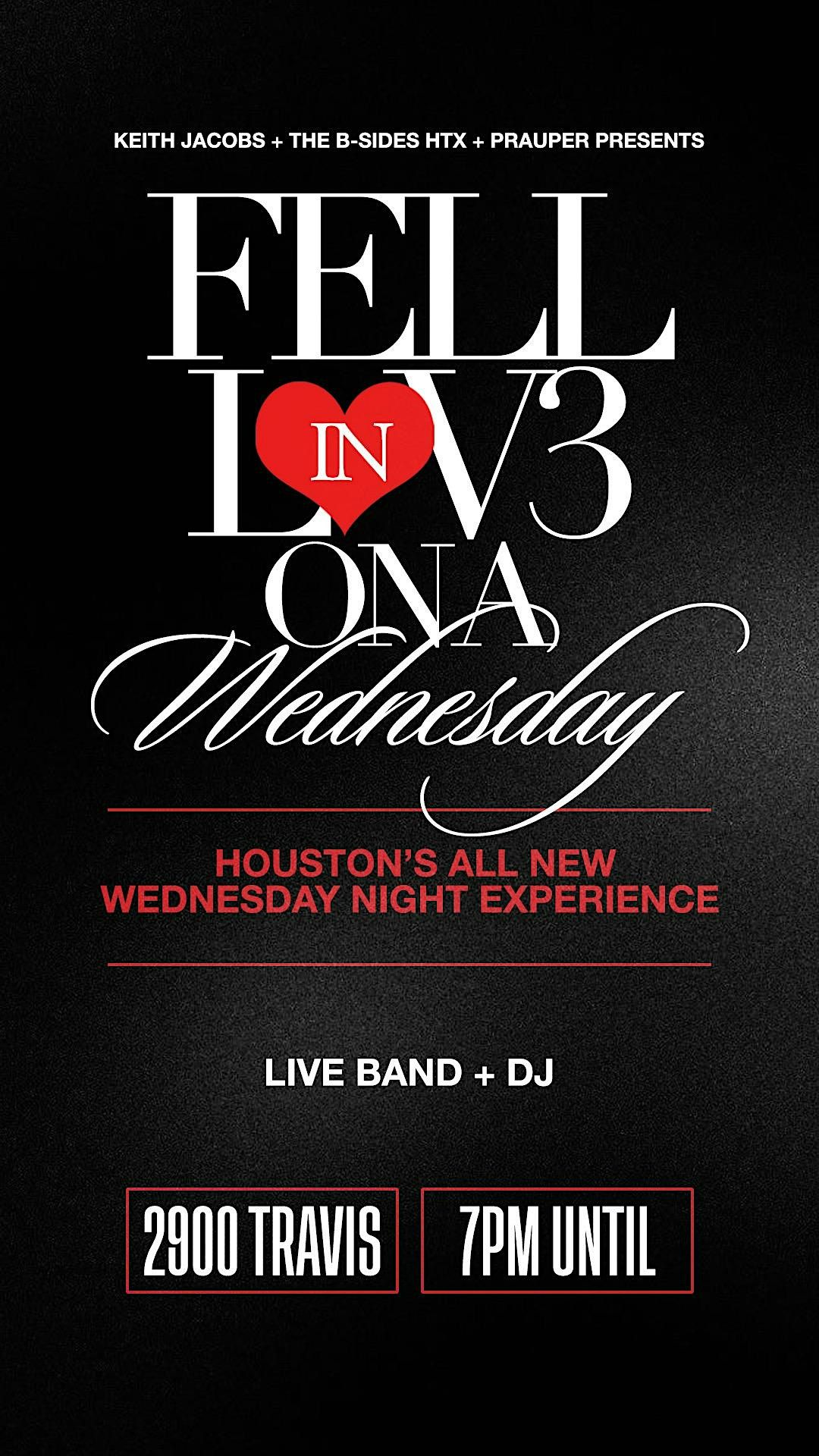 Keith Jacobs, The B-Sides HTX, and Prauper invite you to experience FELL IN LOV3 ON A WEDNESDAY — Houston’s all-new midweek R&B experience designed for the grown, the stylish, and the true lovers of R&B.