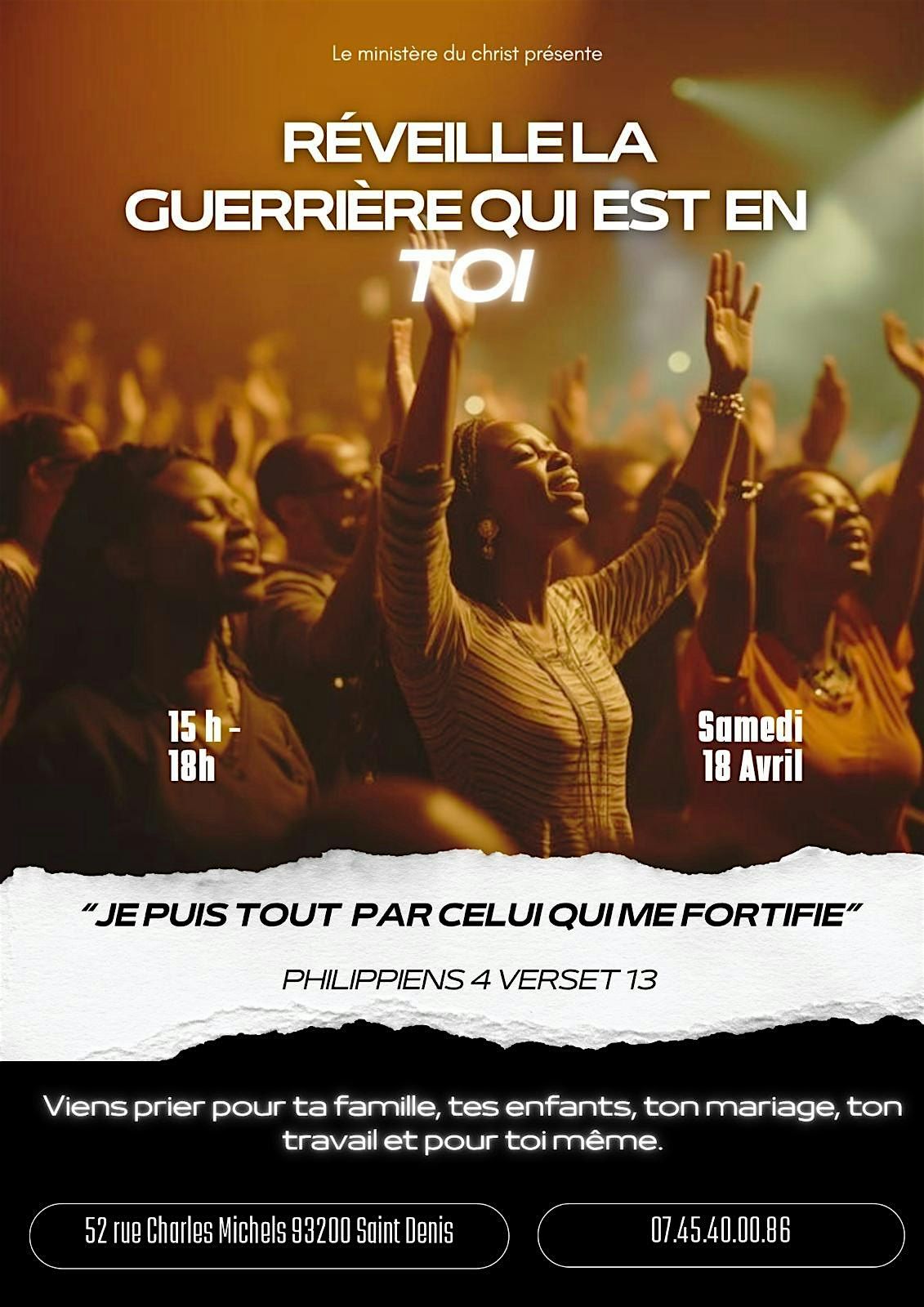 L'unité fait la force. Venez le 18 avril nous allons toutes prier ensemble.