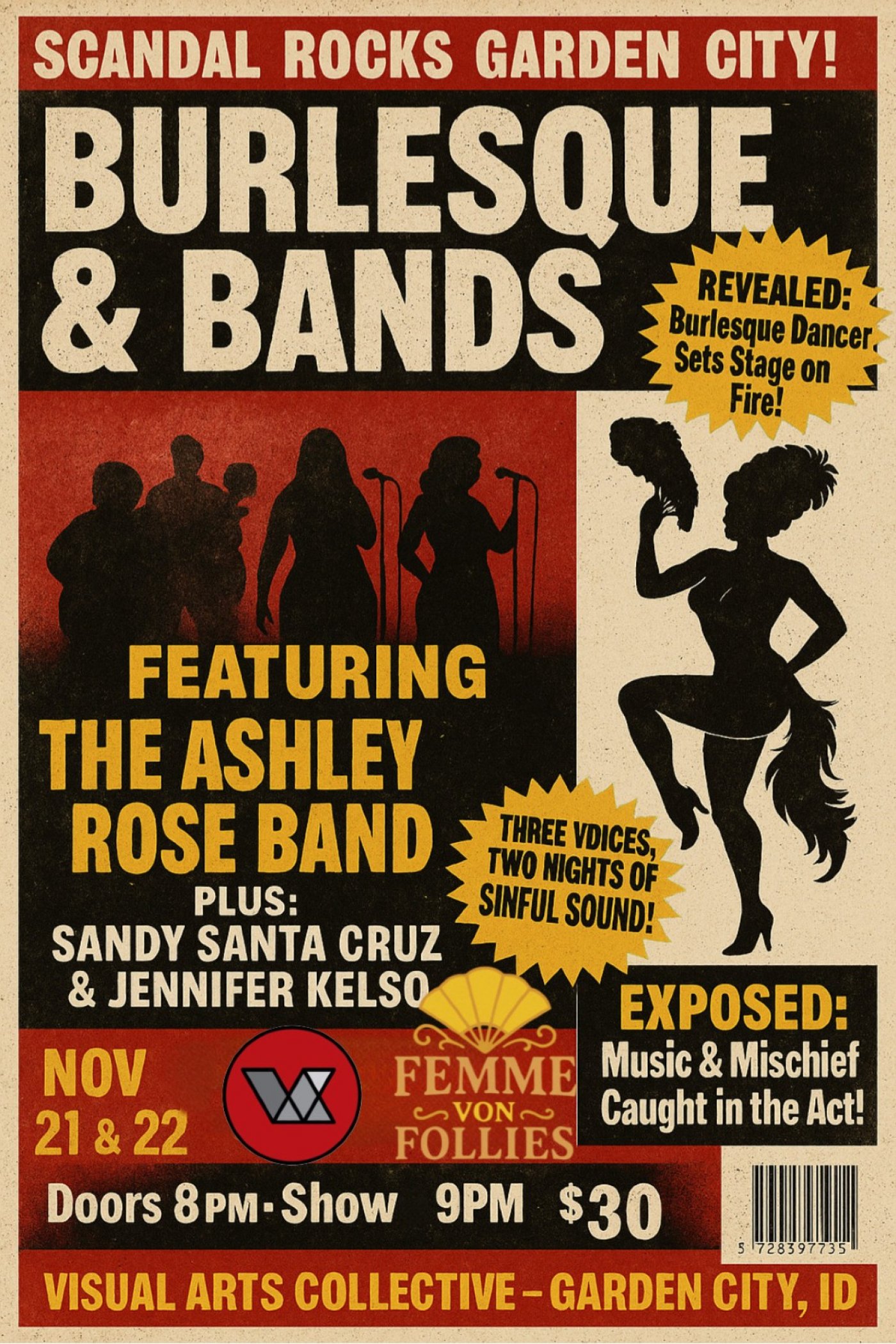 Scandal rocks Garden City! Word on the strip (pun intended) is that Femme Von Follies is back at The VAC with Burlesque & Bands featuring The Ashley Rose Band Sandy Santa Cruz and Jennifer Kelso!