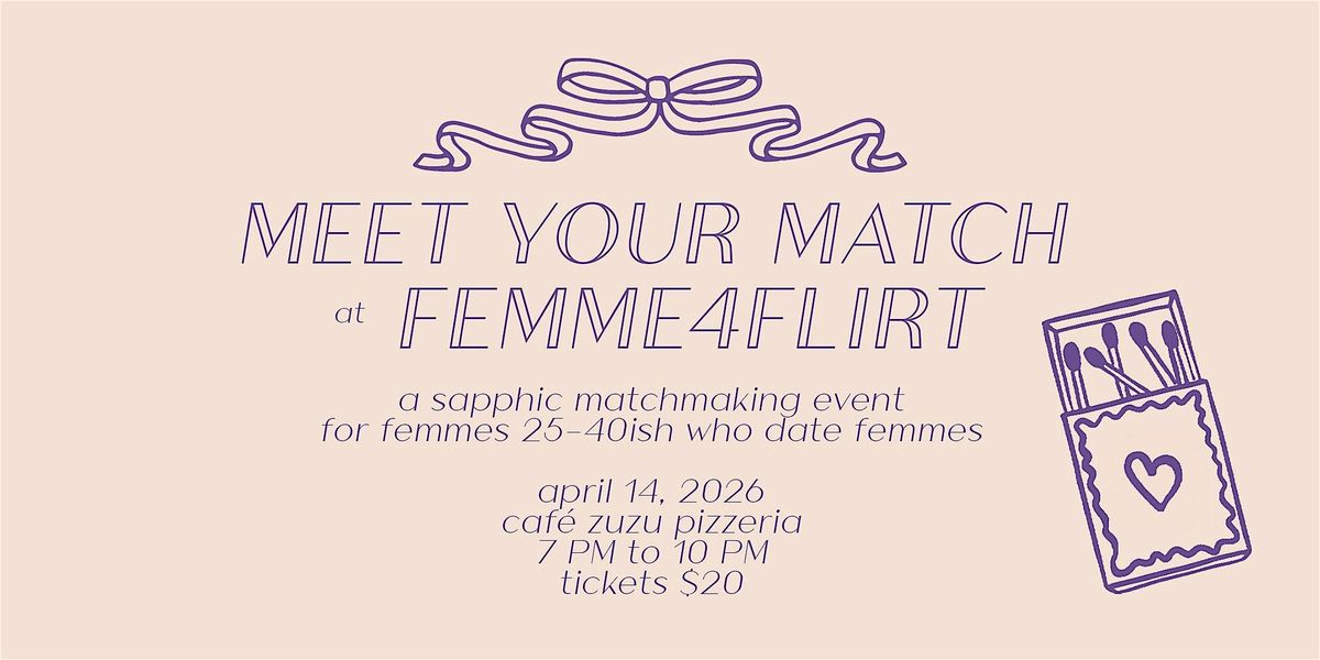 It's back! After 2 sold out events in 2025, @Femme4FemmeTO and Café Zuzu Pizzeria are bringing you the third edition of Femme4Flirt, a matchmaking and dating event for sapphic femmes who date femmes aged 25-40ish. Through facilitated connections, we help you meet your next crush, connection, lover, or partner.