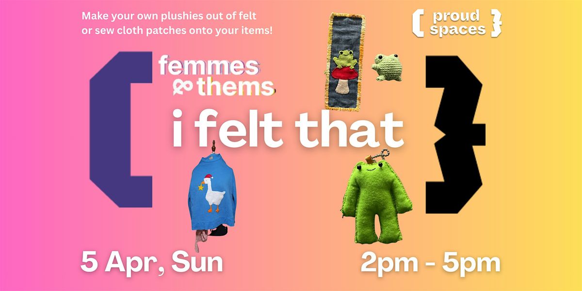 femmes & thems presents: "i felt that", our first volunteer-run workshop for felting, sewing, and other fabric-related crafts! Join us in a wholesome afternoon of joyful crafting as a group with guidance from volunteers!
