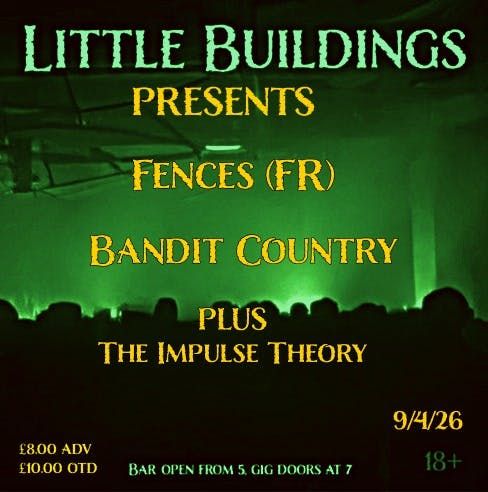 Fences (FR)//Bandit Country//Plus Guest BandFormed from the vibrant energy of eastern Paris, FENCES \\\\ embodies the distinctly French flair formaking stadium-sized rock — without selling out stadiums.Like a supergroup, Gianni (vocals, guitar), Felix (vocals, guitar), Mike (bass, backing vocals), and Loïc(drums, backing vocals) each spent years playing in other bands before joining forces to share theirown vision of rock music.Above all, FENCES \\\\ is the expression of a deep, unwavering friendship. Together, the bandmatesface their demons and heal their wounds through bold, emotionally charged compositions — a blendof distorted guitars, razor-sharp hooks, and ambitious string and brass arrangements. Their raw andheartfelt anthems, driven by a thirst for creative freedom, draw from a timeless British and Americanalternative rock tradition, far from fleeting trends or stylistic gimmicks. Firmly grounded in the present,FENCES \\\\ music is shaped by a generation that disregards genres, breaks rules, and rejects allbarriers.