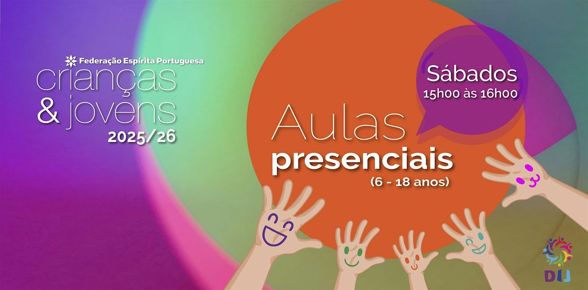 Estão abertas as inscrições para as aulas presenciais destinadas a crianças e jovens dos 6 aos 18 anos, baseadas no Programa Orientador para a Educação Espírita de Crianças e Jovens (PO2ECJ) da Federação Espírita Portuguesa.