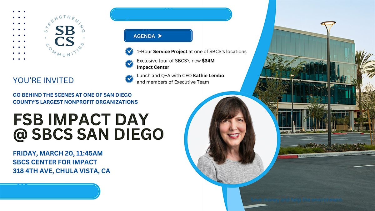 The Fermanian School of Business is excited to host FSB Impact Day @ SBCS San Diego, an immersive nonprofit leadership experience inside one of the region’s most influential community organizations—South Bay Community Services (SBCS). This behind-the-scenes event is designed to give students direct exposure to real-world leadership, service, and community impact at scale.