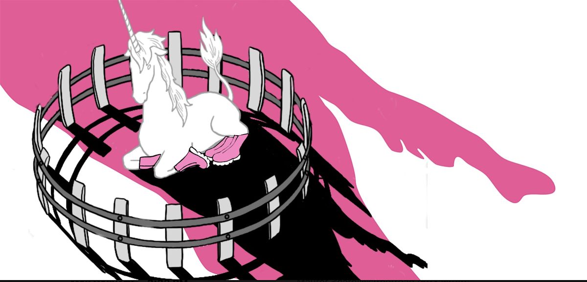 The artwork is a visual reference to one of seven 16th century tapestries from the series "The Hunt of the Unicorn". The tapestry is titled "Unicorn in Captivity”. The mythology of the unicorn, and how it has evolved over time, is an allegory for humanity's shifting relationship with the natural world. In ancient times, the unicorn symbolized wild and untamed nature, something to be feared and respected. During the medieval period, the unicorn's power was coveted, leading to stories of its capture and utilization. By the modern period, the unicorn has become a symbol of rarity and value, to be extracted, exploited and commercialized.
