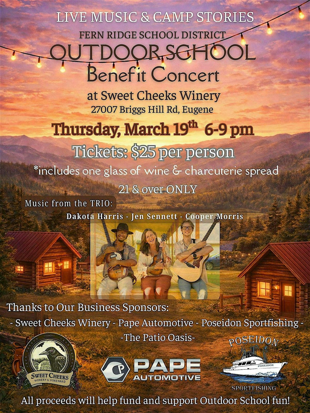 Join us on Thursday, March 19th at 6pm to enjoy live music and heartfelt camp stories in a stunning winery setting. Each ticket includes one glass of wine and a charcuterie spread. Additional wine is available for purchase. Bring cash for our 50/50 Raffle!