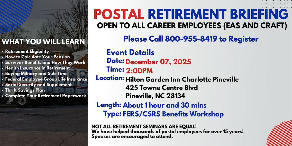The postal retirement seminar is a comprehensive session designed to help attendees navigate the complexities of retirement planning.About this Event