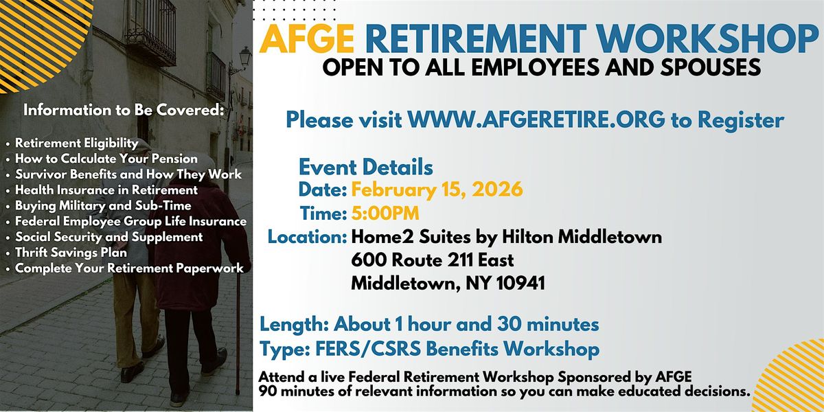 Please Register at WWW.AFGERETIRE.ORG as there may be limited seating.