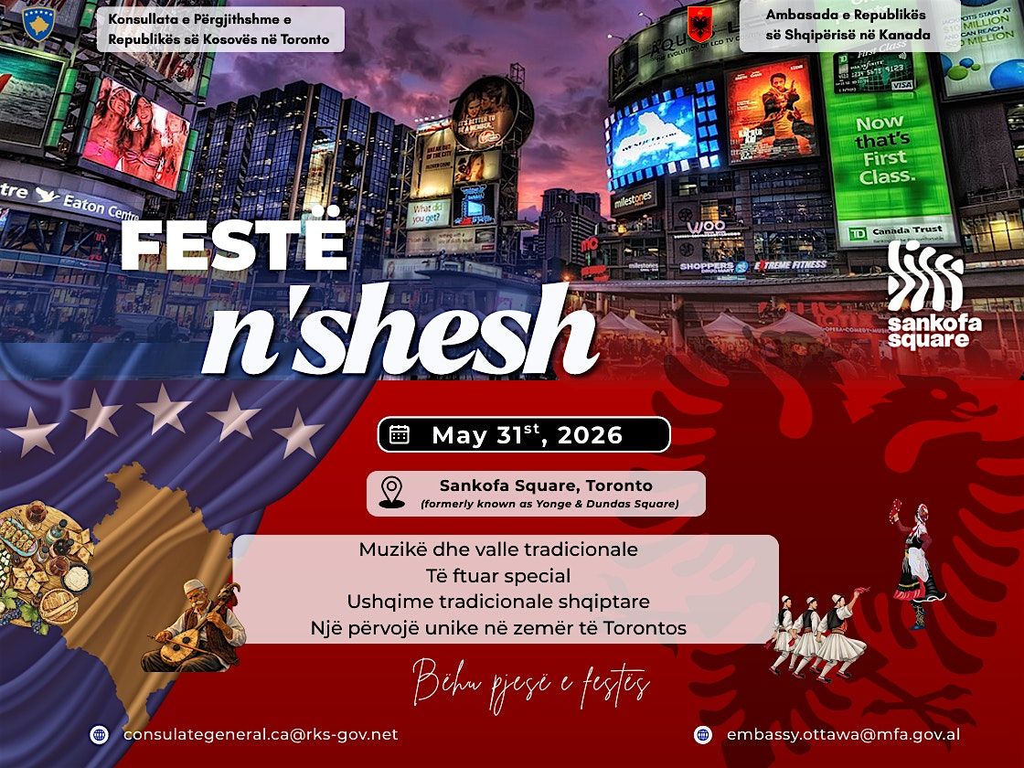 Më 31 Maj 2026, bashkohemi në zemër të Torontos për një festë madhështore shqiptare në Sankofa Square! 🎉