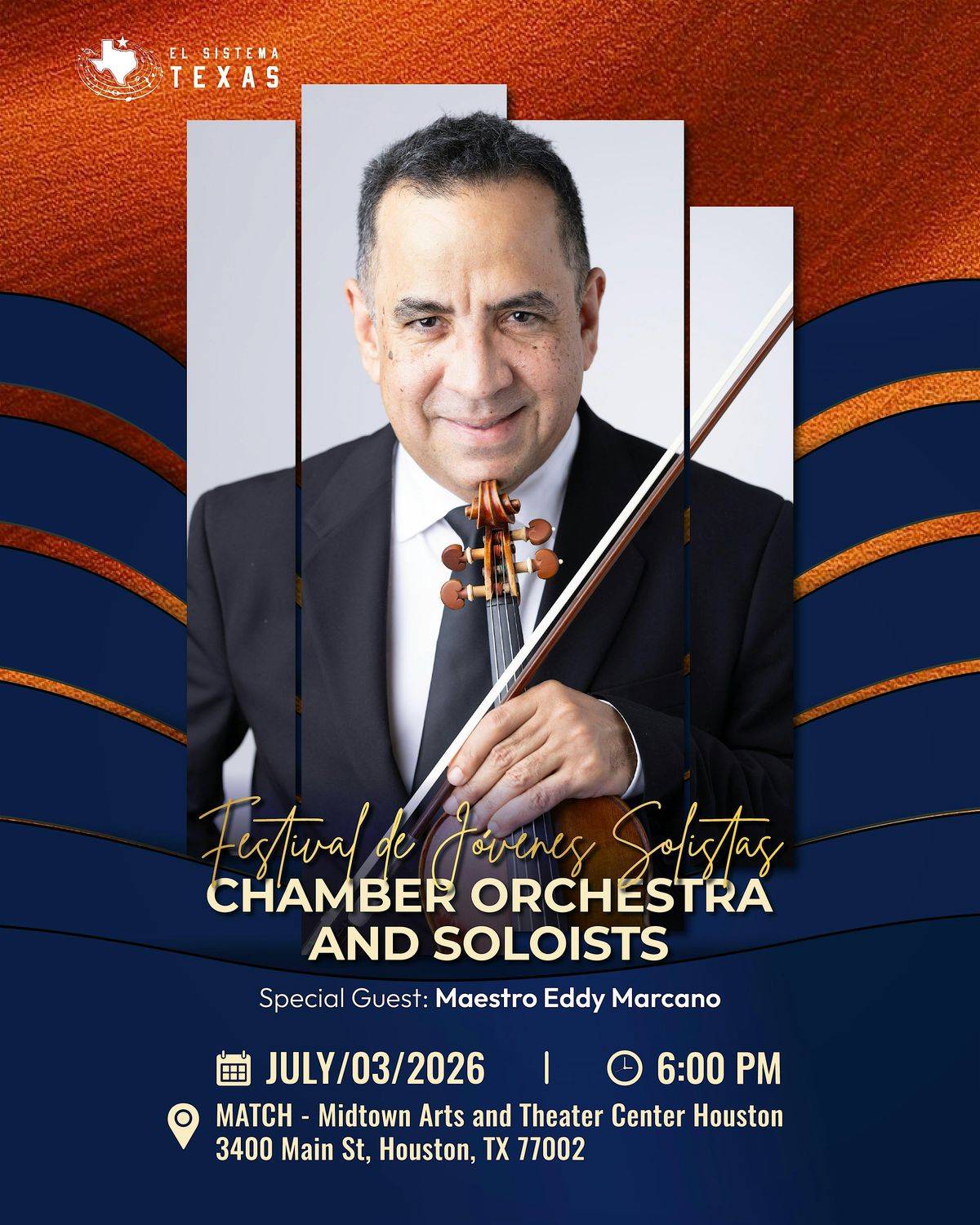 We are honored to welcome Maestro Eddy Marcano as our special guest artist — one of Venezuela’s most distinguished violinists and conductors, former member of the Simón Bolívar Symphony Orchestra, and an internationally recognized performer and educator who has appeared in major venues including Carnegie Hall