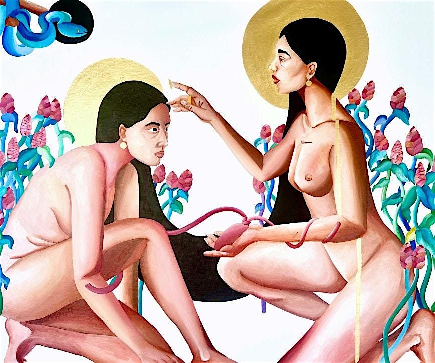 The Maison Française at NYU, in partnership with the Organisation Internationale de la Francophonie, presents Je Suis Ātman, a collection of works by the Franco-Cambodian artist Adana Mam Legros, inspired by her multiple battles with cancer.