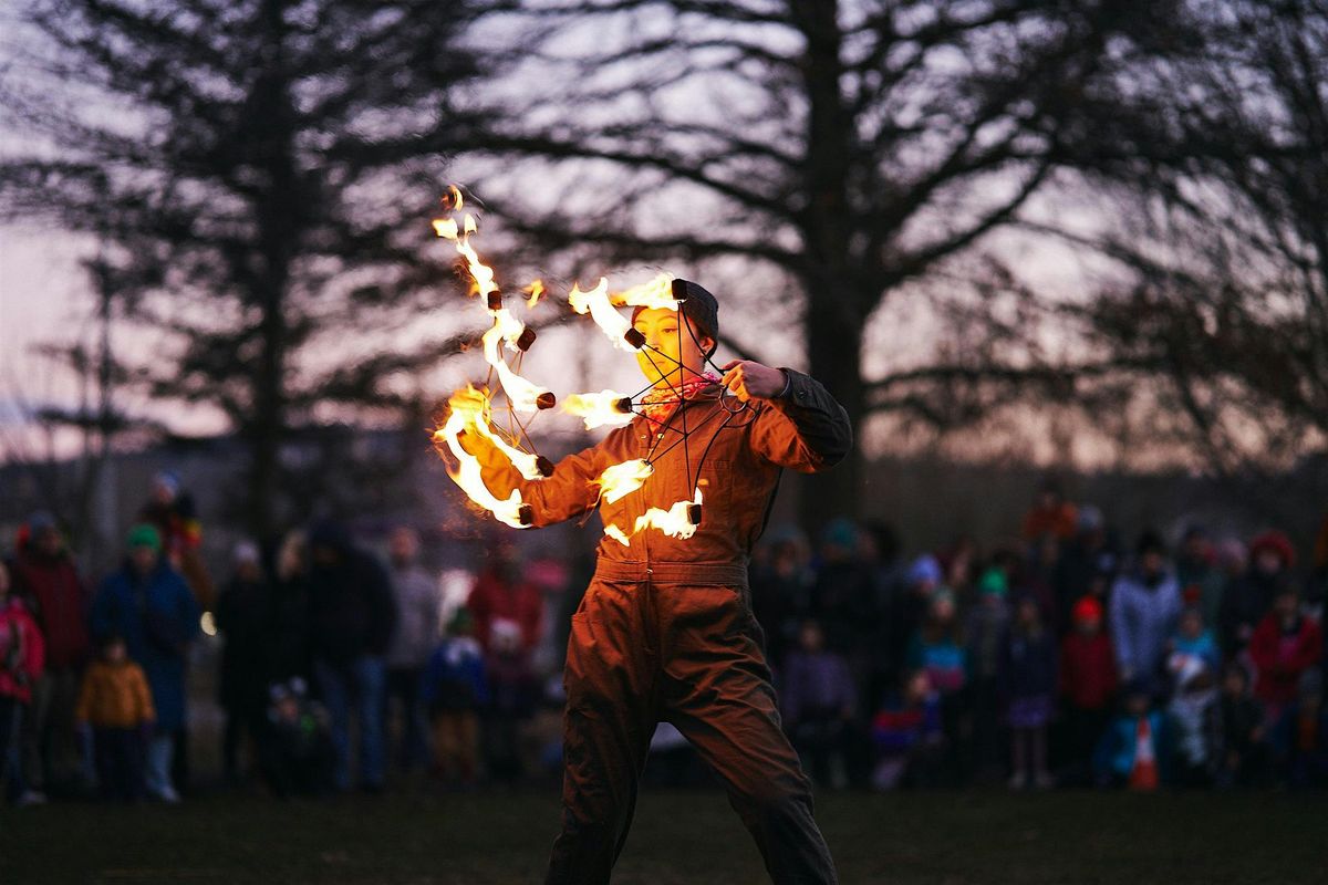 Throughout the afternoon, explore playful winter stations like potion making, the ice lab, fence weaving, and more. Warm up at the hot cocoa cauldron, roast marshmallows, or purchase a s’mores kit. Enjoy moments of imagination with and immersive Haudenosaunee storytelling by . As the sun sets, gather for breathtaking fire performances around the Village Green.
