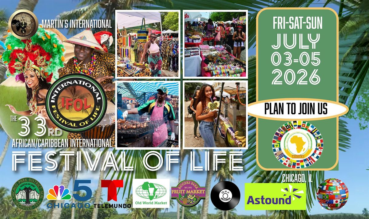 The 2025 International Festival of Life will continue its proud tradition of celebrating global music, arts, health awareness, and cultural education from Friday to Sunday, July 11–13, 2025, at WASHINGTON PARK, located at East 51st & South Cottage Grove - Chicago, Illinois. The IFOL starts daily from 12 Noon to 10 PM, featuring more than 30 diverse performing acts from Reggae, Caribbean, Afrobeat to Pop, R&B, Hip Hop, Blues, Jazz, House, Latin and Gospel among others to take the stage.