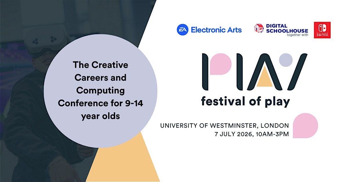 The Festival of Play returns, brought to you by Digital Schoolhouse and Electronic Arts. Immerse your students in a day of interactive workshops, industry-led talks, and hands-on gaming as we dive deep into the technology and creativity driving the UK video games industry.