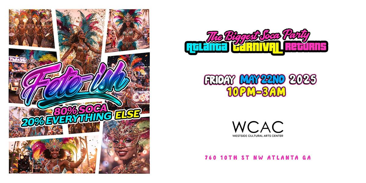 Join us at West Side Cultural Art Center and let the music transport you to the Caribbean as we celebrate and embrace the vibrant SOCA culture. Grab your friends, put on your dancing shoes, and get ready to have a blast at FETEISH 80% SOCA 20% EVERYTHING ELSE!