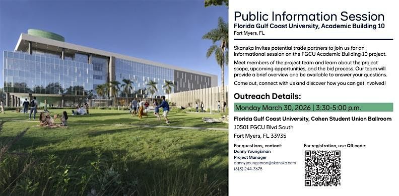 SKANSKA invites potential trade partners to join us for an informational session on the FGCU Academic Building 10 project.