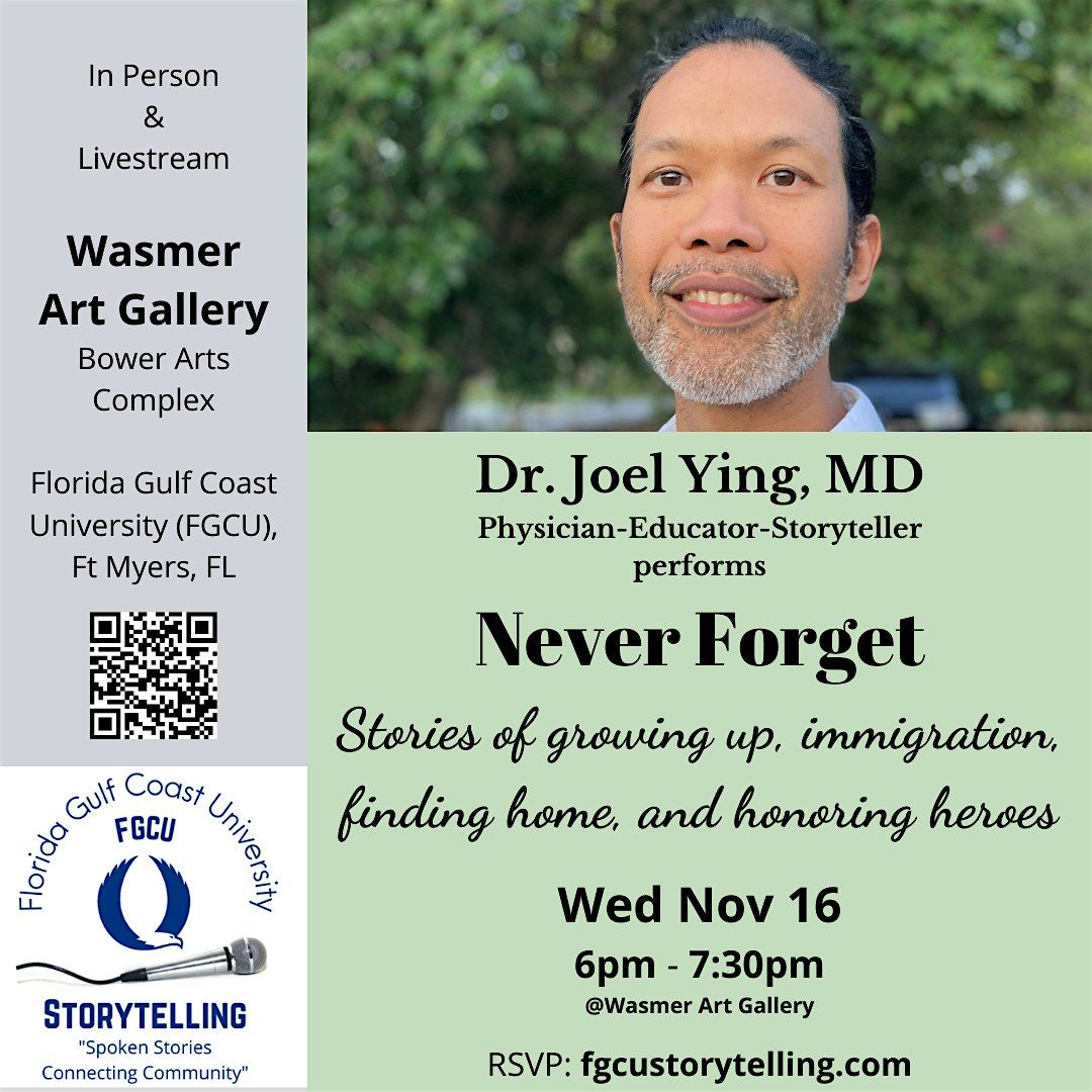 Dr. Joel Ying is a Physician-Storyteller-Educator in Naples, Florida. Stories, he will tell you, are medicine. You might get a dose in performance (or in his office) filled with sweet personal moments, salty humor, sour sadness, spicy folk tales or even bitter truth. It goes down with ease when it comes with a story.