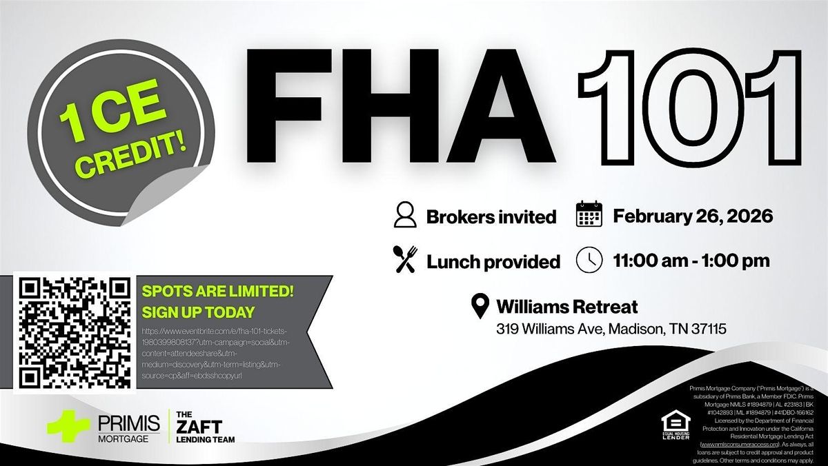 Join us in person for an exciting introduction to FHA.Gain a foundational overview of the Federal Housing Administration’s mortgage program. You’ll understand the essentials of FHA financing and how these government-insured loans can make homeownership more accessible.