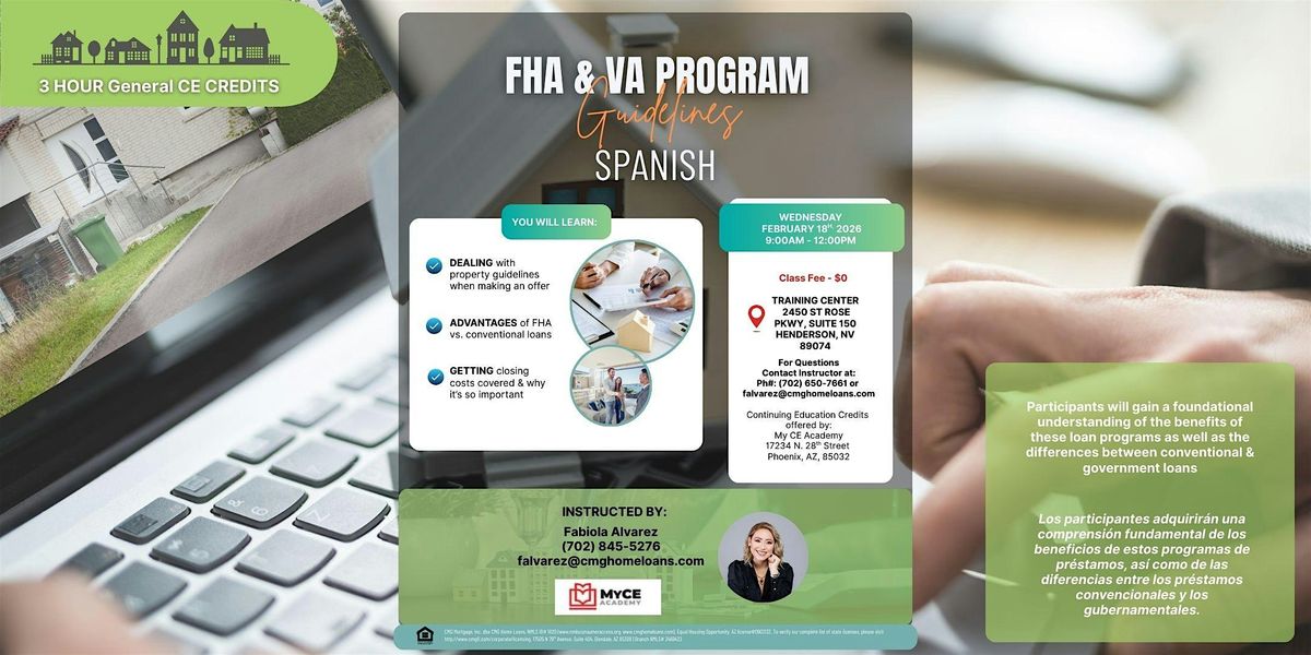 Join us for an in-depth FHA & VA Program Guidelines class designed for real estate professionals looking to strengthen their understanding of government loan programs. This 3-hour General CE Credit course breaks down how FHA and VA loans compare to conventional financing, how property guidelines affect offers, and how closing costs can be structured to better serve buyers.