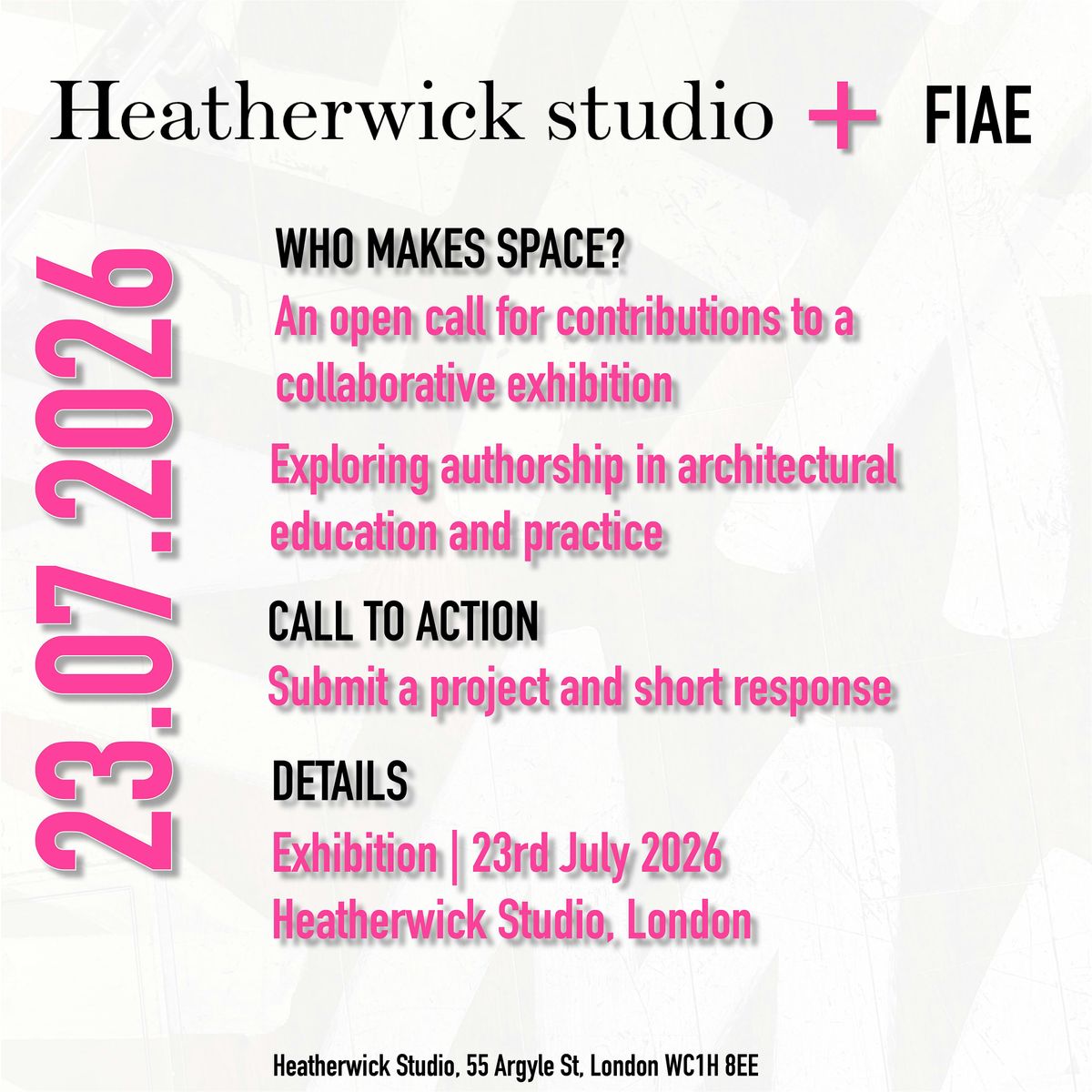 Females in Architectural Education (FIAE) invites submissions for a collaborative exhibition at Heatherwick studio, London (23rd July 2026).