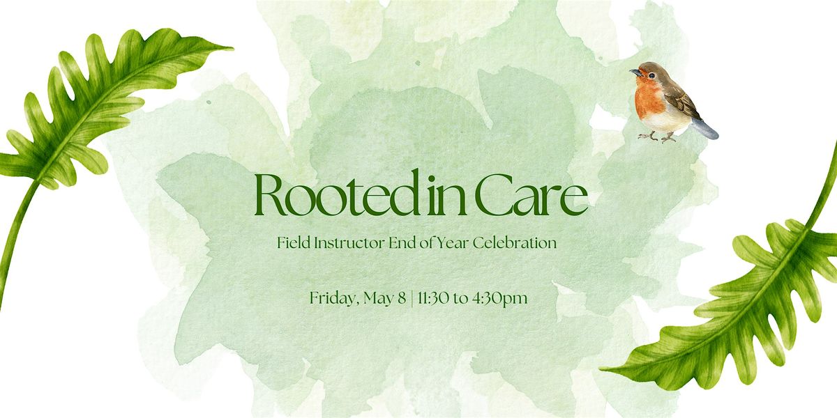 From there, we'll move into a program centered on this year's theme, Rooted in Care. You'll hear from SSW program directors, a student panel reflecting on their practicum experiences, and a featured session with SSW Instructor Katelyn Song — a somatics-based workshop on grounding, resilience, and sustainable care in supervisory work. The afternoon closes with a creative art activity and time for informal connection before we wrap up together.