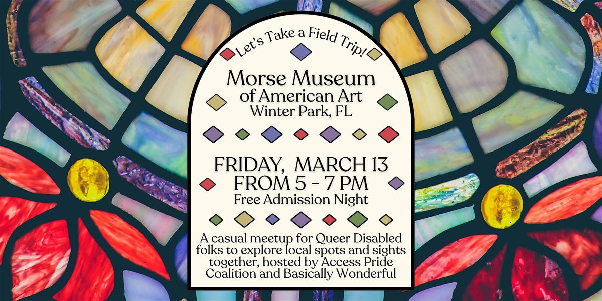Let's take a field trip! Join Access Pride Coalition and Basically Wonderful as we explore the Morse Museum of American Art together on Friday, March 13 from 5-7PM.