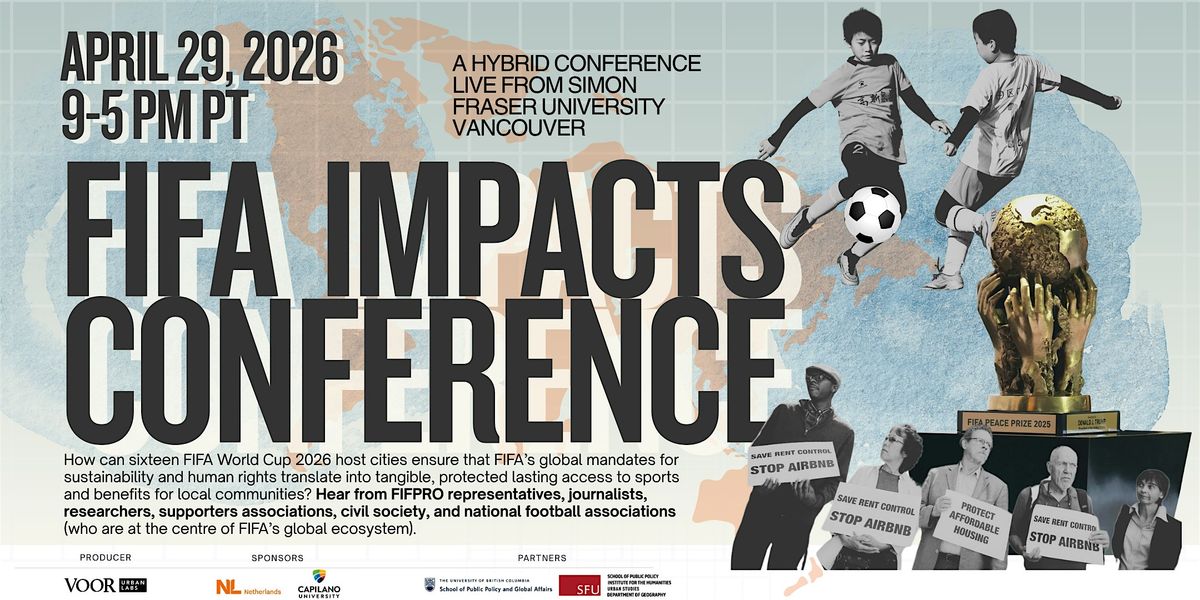 In the afternoon, the focus shifts to Communities and Impacts. FIFPRO Secretary General Alex Phillips lays out a bold vision for the social contract with FIFA—arguing for smarter governance and a remission fund that channels wealth back to the players and grassroots communities who sustain the game. Jennifer Li of Dignity 2026 then moderates a sharp critique of Human Rights Plans—Strategy vs. Reality in Host Cities, exposing the gaps between FIFA’s written commitments and on‑the‑ground implementation. A dynamic panel of leaders including Kumsa Baker of the Toronto Community Benefits Network, plus guests from Atlanta, New York, and Miami follows, sharing how host cities are rewriting the rules for mega‑events: securing fair labour, immigration protections, and lasting infrastructure that neighborhoods actually need. Finally, participants move into Working Together on Key Policy Areas—housing, public health, civil liberties, youth employment, and more—to forge concrete recommendations from the conference presentations and discussions.The participation of university researchers from ten Vancouver area university departments support facilitationthat will shape the conference's final Impact Manifesto.