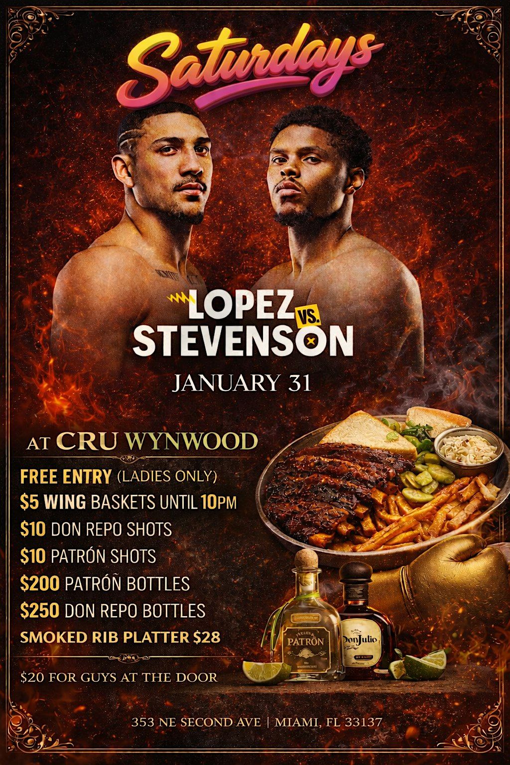 #CruWynwood #WynwoodMiami #FightNightMiami #LopezVsStevenson #MiamiNightlife #BoxingNight #DAZN #MiamiEvents #WynwoodVibes #MiamiSaturday #WingSpecials #BottleServiceMiami #RibsAndVibes ๐ฅ๐ฅ๐พ