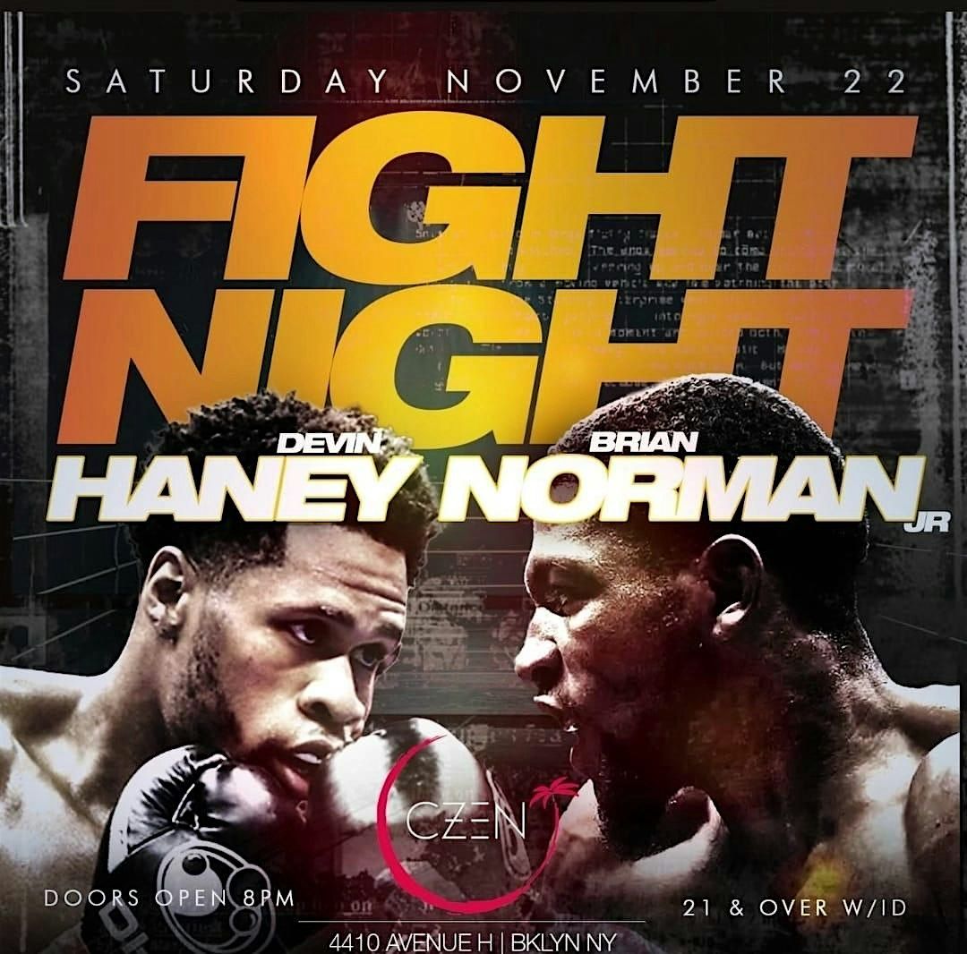 Fight Night at CZEN! Catch Haney vs Norman Jr live, great food, drinks, and big energy. Doors 8PM. 21+. 4410 Ave H BK.