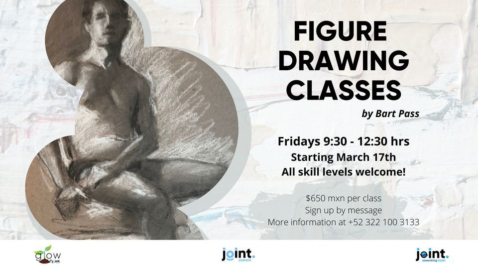 The Grow by Joint series of classes and workshops are pleased to introduce Figure Drawing Classes by painter Bart Pass, beginning March 17th and taking place all Fridays from 9:30 am - 12:00 pm. Sign up by message and join us!