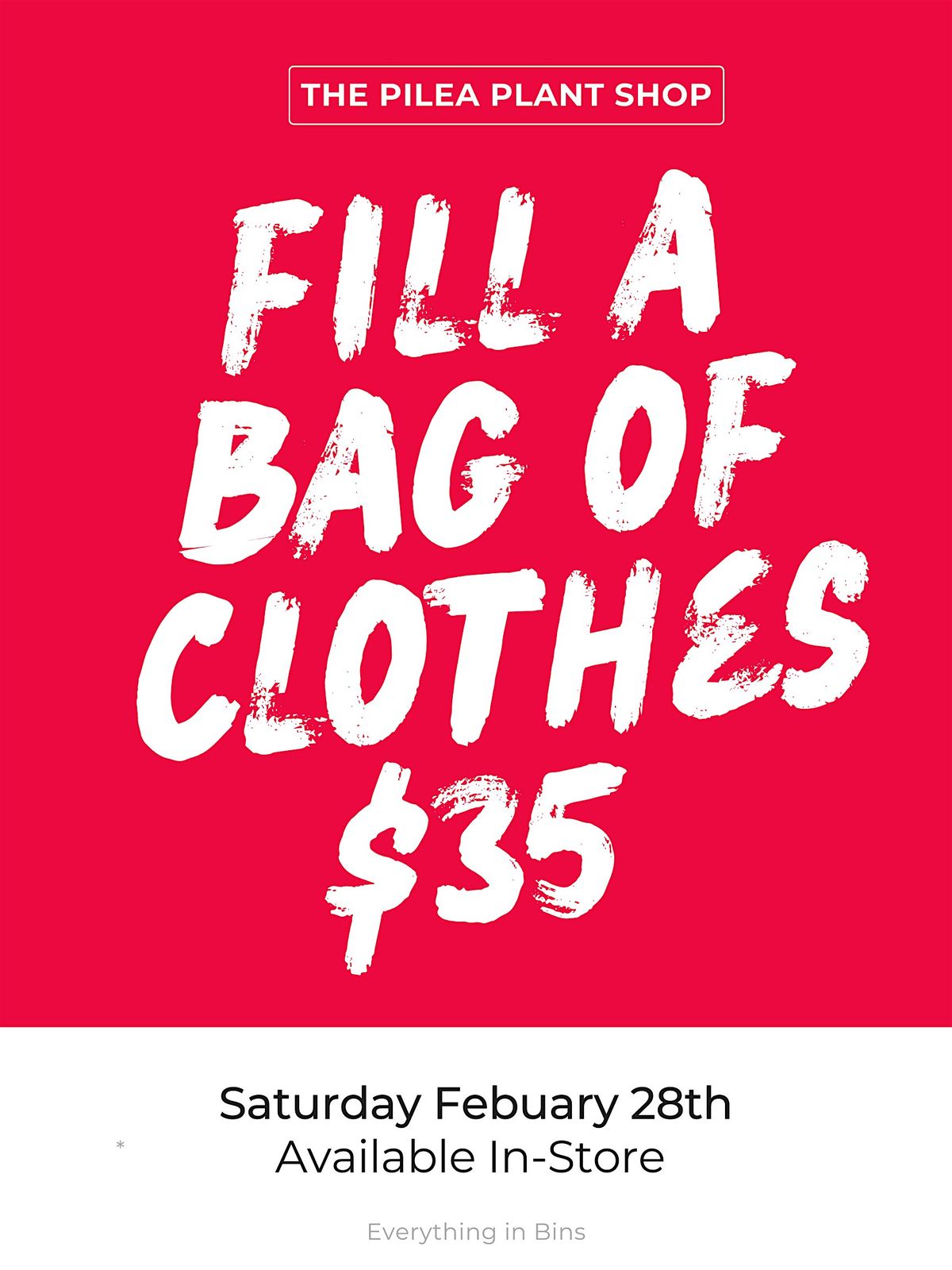 Fill a bag of clothes from our bins for $35.