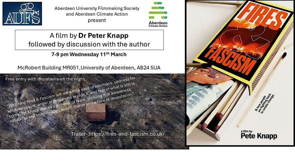Dr Peter Knapp, PhD graduate of Imperial College, has created a film on wild fires in Eurpope linking to both climate change and far right politics that sheds light on the man made and deliberate causes of destruction and offers insights into inspiring movements that are challenging them. He is touring the UK with the documentary. Come and see the one hour film and join in a discussion on the the issues raised with Peter himself.