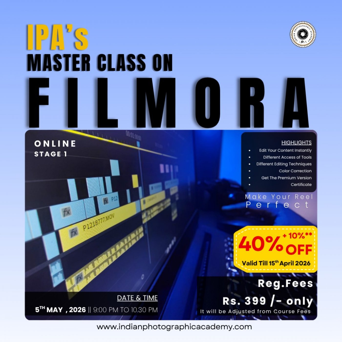 If you are looking to develop your skills in online video editing, IPA's Master Class on Filmora is the best option in Kolkata.