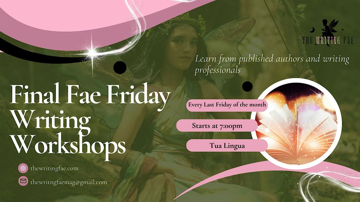Welcome to Final Fae Friday Writing Workshops at Tua Lingua! Join us on on the last friday of the month at 7:00 PM for a magical evening of creativity and inspiration. 🧚✨ Dive into the world of fantasy writing with fellow enthusiasts and sharpen your storytelling skills. Whether you're a seasoned writer or just starting out, this workshop is perfect for all levels. Let your imagination run wild and bring your stories to life! Don't miss out on this enchanting opportunity to connect with other writers and explore the realm of fae together. See you there! (Eastern Time)