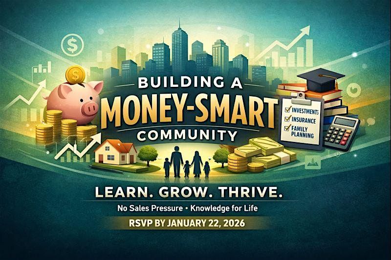 Let's build a money-smart community. Learn insurance, investing & family planning—no sales pressure. RSVP by Jan 22, 2026.