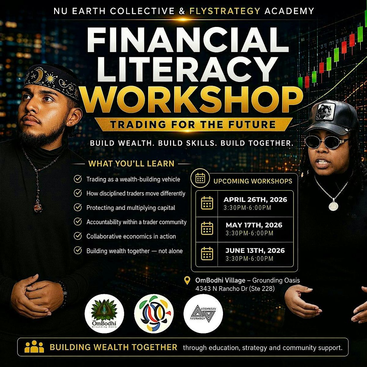 Hosted by Nu Earth Collective and FlyStrategy Academy, this workshop introduces trading as a wealth-building vehicle while emphasizing the mindset, discipline, and accountability needed to move with intention. Rather than approaching wealth alone, this experience creates space for people to learn together, build together, and develop practical skills in a supportive environment.